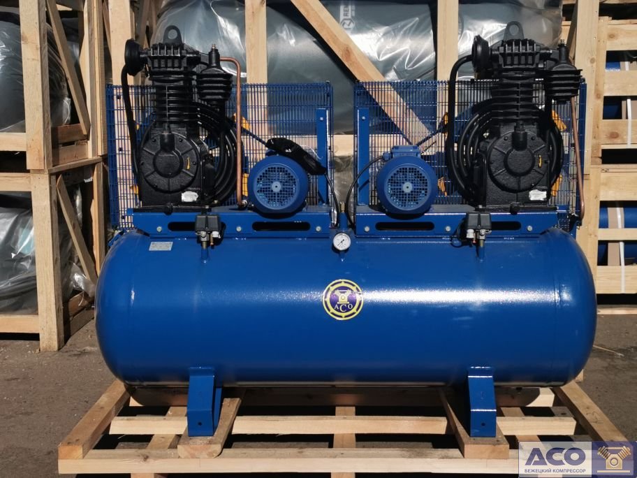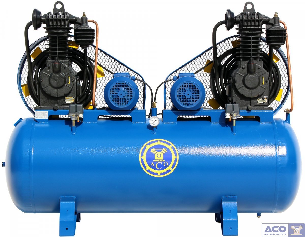 Поршневой компрессор К30/13 (К30-02) имеет два независимых электродвигателя мощностью 11 (5,5+5,5) кВт с напряжением 380В. А Ременной привод обеспечивает передачу от двигателя на коленвал.