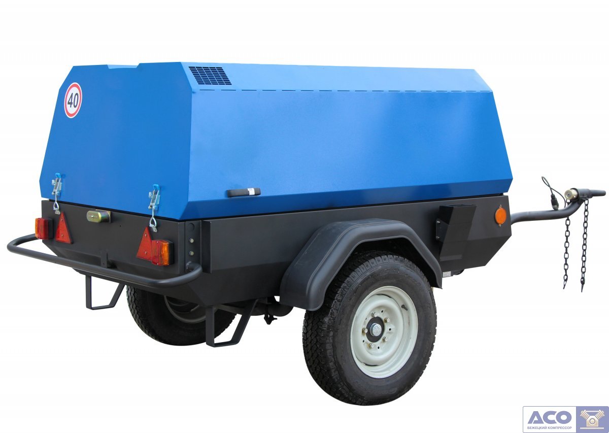 Передвижной винтовой компрессор АСО-ВК50/10 ПД Бежецкого завода АСО имеет производительностью 5000 л/мин и рабочее давление 10 атм.
