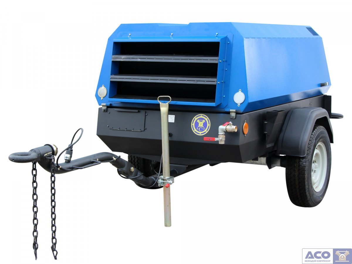 Передвижной винтовой компрессор АСО-ВК50/7 ПД Бежецкого завода АСО обладает производительностью 6000 л/мин и рабочим давлением 7 атм.
